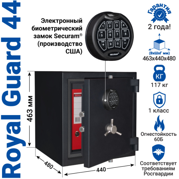 Сейф с биометрическим замком Royal Guard 44 Черный