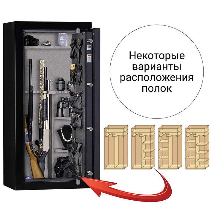 Полностью удовлетворяет требованиям Росгвардии к хранению оружия.